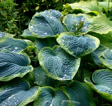 Крупная хоста. Листья плотные, выражены и морщинистость, и жилкование. Центр синий, края от салатового до кремового. На основном фото хосты - натуральный пятилетний куст. На других фото та же самая хоста - в двухлетнем и четырёхлетнем (лист) возрасте. К сожалению, мы не имеем возможности выращивать каждый сорт хосты до максимального проявления характерных сортовых особенностей, так как нужно много места и делить взросый куст хосты довольно трудоёмко.Характеристики