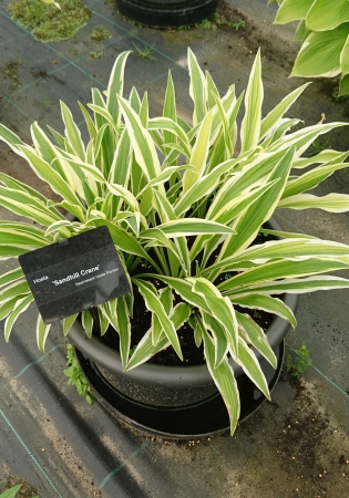 Уникальная хоста среднего размера, высотой 40 см и шириной 60 см. Листья очень длинные (20-22 см) и узкие (4-5 см), зелёные с белой каймой по краям, напоминают листья осоки. Цветки пурпурные. Идеально подходит для комбинации с папоротниками, астильбами и бруннерами.Характеристики