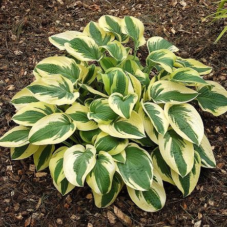 Хоста "Вайд Брим" (Hosta Wide Brim) относится к группе средних хост. Цветки ароматные. Куст плотный, растет быстро. Одна из самых популярных хост для ландшафтного озеленения, очень устойчива к повреждению улитками и слизнями.Окраска листьев или цветков: