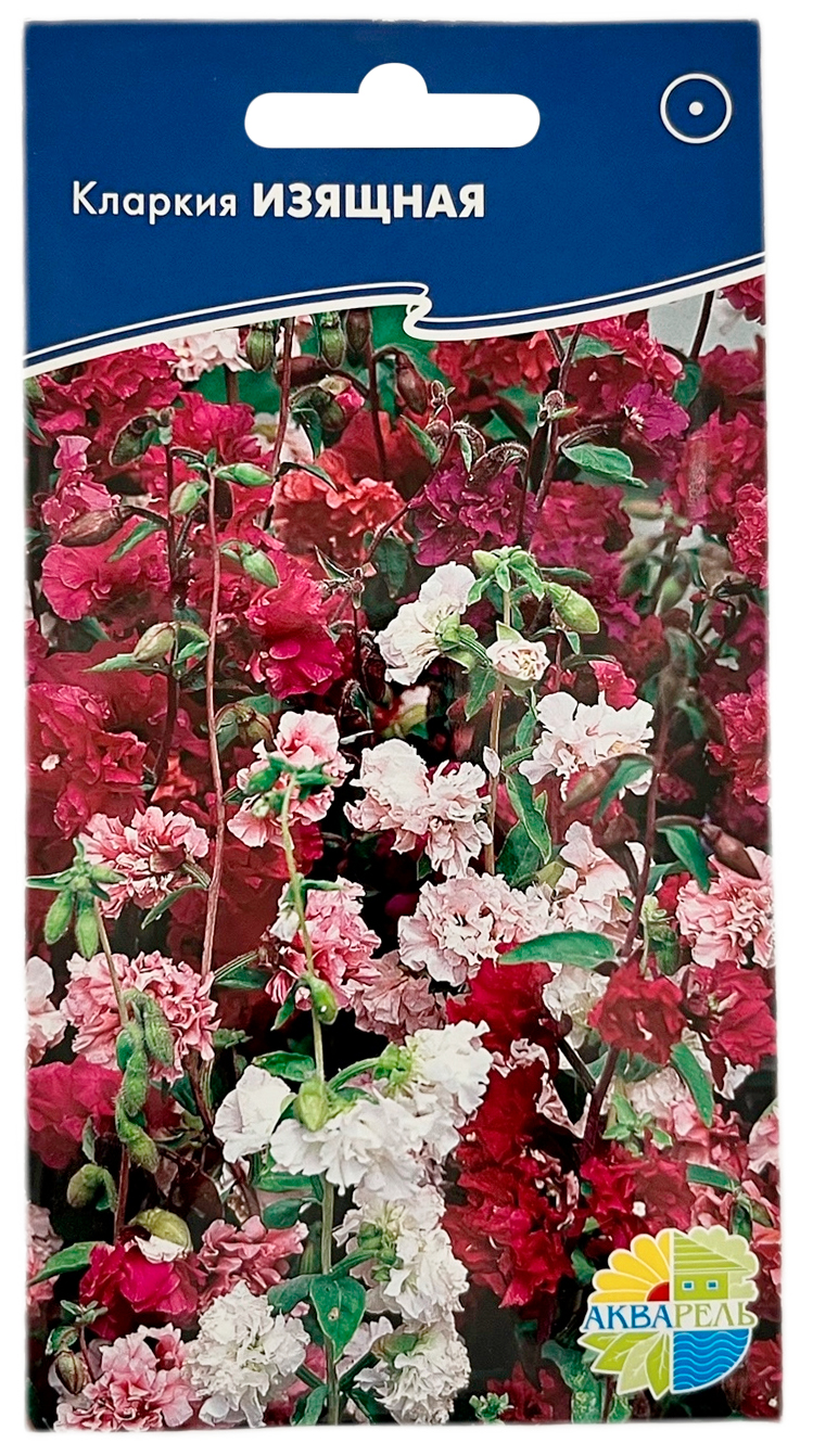 Кларкия ИЗЯЩНАЯ АКВАРЕЛЬСильноветвистое растение высотой 60 см с махровыми, похожими на миниатюрные розочки цветками, диаметром 3-4 см, различной окраски. Благодаря своим декоративным качествам можно использовать при оформлении пестрых цветников, рабаток. Пригодно для срезки, соцветия в вазах стоят до 8 дней. Можно использовать для аранжировки, особенно эффектно при удалении всех листьев.