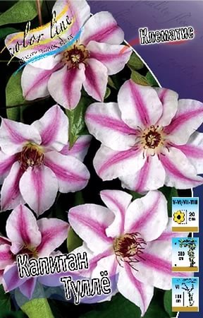 Высота 300 см, цветки 20 см в диаметре, крупные, белые с розовой полосой и темными пыльниками, выгорают на солнце, не любит жарких мест. Листья сложные, перистые, состоят из 3-5 листочков. Цветки одиночные, чашелистиков 6-8, образуют звездообразные цветы. Цветение с мая на побегах прошлого года, очень редко происходит повторное цветение в августе на побегах текущего года.Характеристики