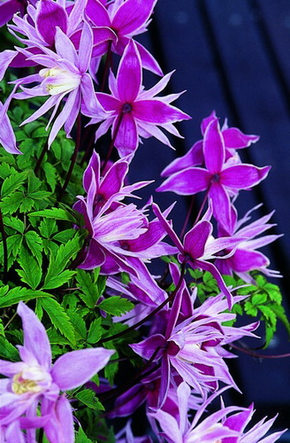 Один из ранних и обильно цветущих сортов. Высота растения 2-3 метра. Цветки пониклые, колокольчатые, махровые, с четырьмя чашелистиками, пурпурно-розовые. Тычинки многочисленные, совпадают окраской с лепестками. Цветет с апреля по июнь. После отцветания образуются декоративные соплодия. Морозоустойчив и малотребователен к условиям выращивания. Выращивается у ограждений, беседок, решёток и других садовых опор. Может виться по натуральным опорам. Подходит для выращивания в контейнерах. Может использоваться как почвопокровное растение.Характеристики