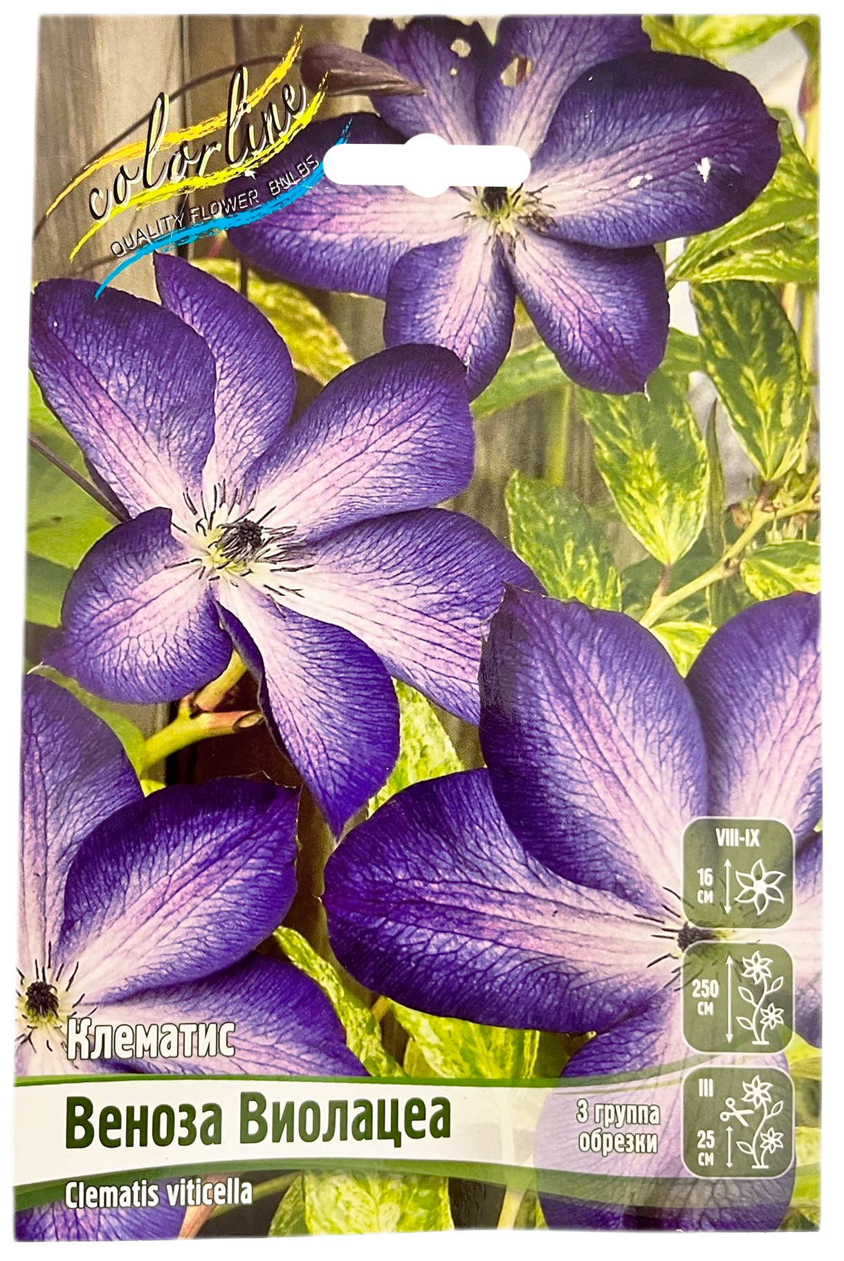 Клематис ВЕНОЗА ВИОЛАЦЕА (3 группа обрезки)Окраска: фиолетовое жилкование на белом фоне;