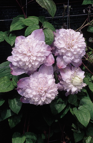 Сорт, образующий в июне-июле на прошлогодних побегах махровые, крупные, фиолетово-белые цветки. Высота растения от 2 до 3 метров. Цветёт с мая по сентябрь. Высаживают на южном, восточном и западном направлении. Нуждается в слабой обрезке. Хорошо подходит для посадки у ограждений, беседок, решёток и других садовых опор. Может виться по натуральным опорам, например кустарникам или полукустарникам, не требующим сильной обрезки. Подходит для выращивания в контейнерах.Характеристики