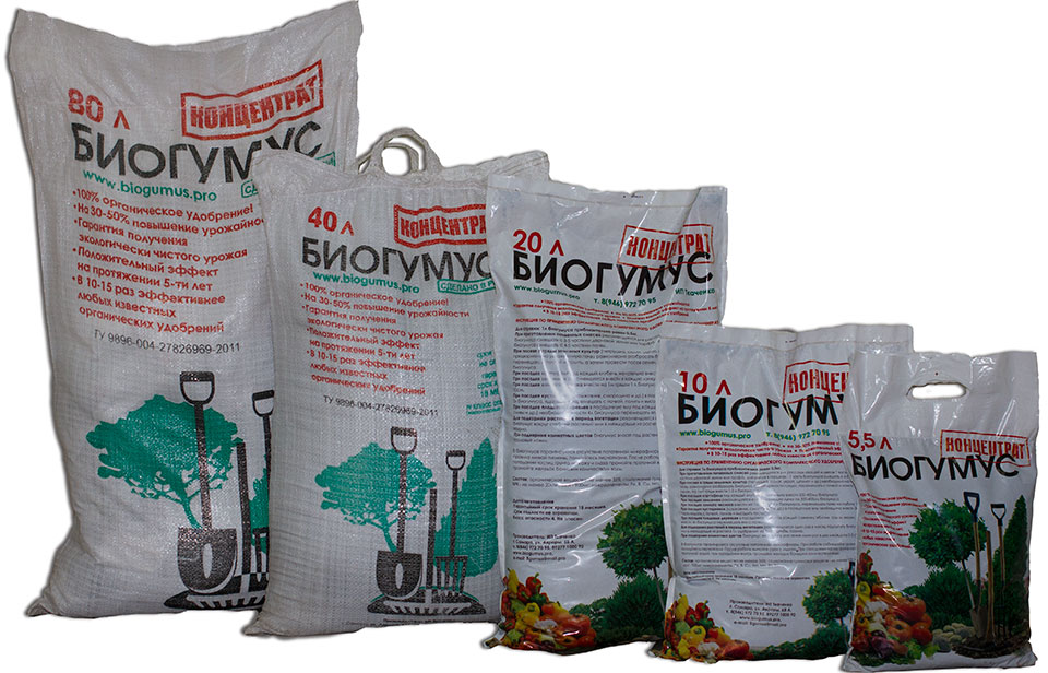 Биогумус – новое качественное органическое комплексное удобрение, продукт переработки органических отходов популяцией дождевого червя «Самарский гибрид». Представляет собой сыпучую мелкогранулиованную массу темно-коричневого цвета. Биогумус содержит в сбалансированном сочетании целый комплекс необходимых питательных веществ и микроэлементов, ферменты, почвенные микроорганизмы, гуминовые вещества, витамины. Это также и микробиологическое удобрение, в нем обитает уникальное сообщество микроорганизмов, создающих почвенное плодородие. Биогумус не содержит патогенной микрофлоры, яиц паразитов и вредителей, семян сорняков. Удобрение легко и постепенно усваивается растениями в течение всего цикла своего развития.