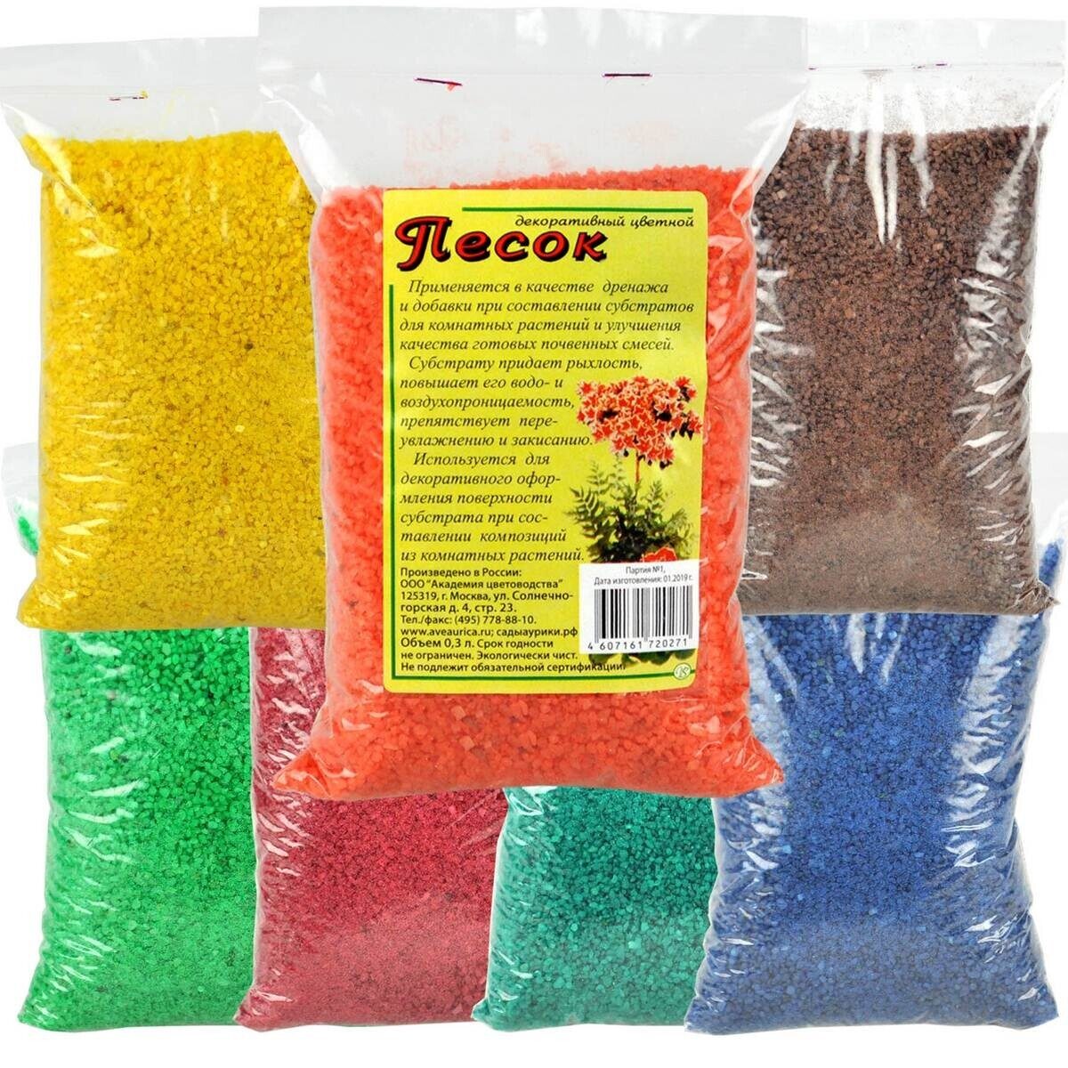 Декоративная цв. песок 0,3л Сады АурикиПрименяется как декоративные накрывающие грунты (ландшафтный, парковый, аквариумный дизайн). Материал выдерживает воздействие любых атмосферных условий, не меняя своих декоративных свойств.