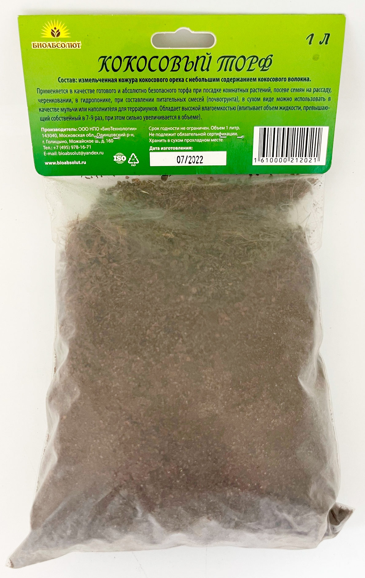 Кокосовый торф 1л БиоабсолютКокосовый торф - это готовый к использованию кокосовый субстрат с идеальной структурой и стабильным уровнем pH.