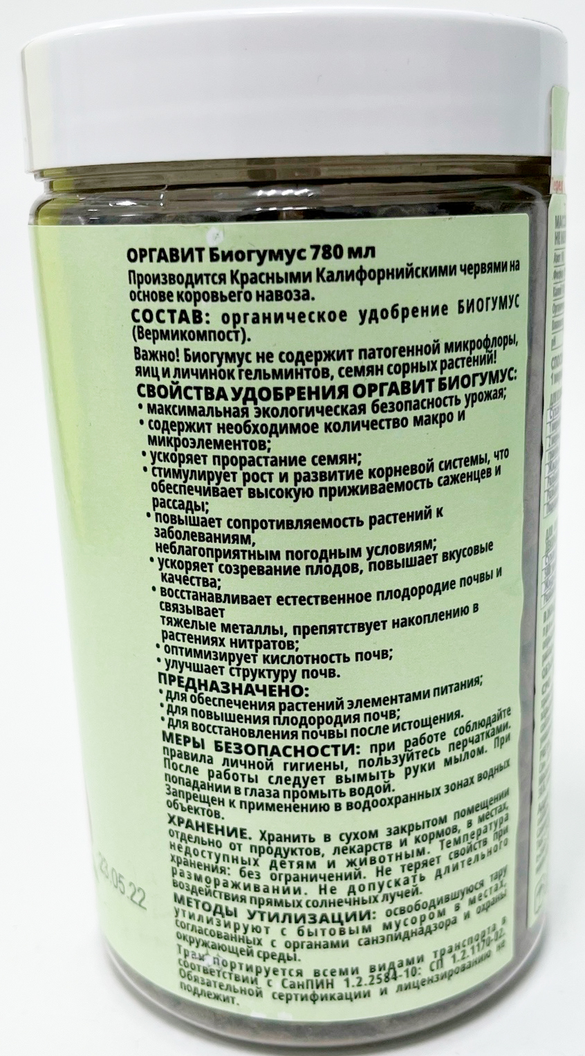 Удобрение Оргавит биогумус 780млБиогумус - это биологически активное натуральное органическое удобрение. Вырабатывается червями из органического сырья-конского и коровьего.