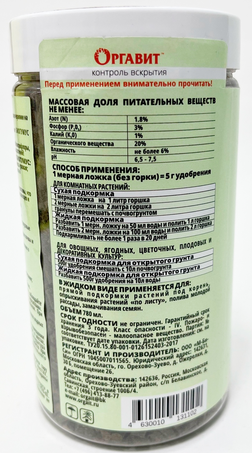 --Оргавит Биогумус 780млСеменаПосадочный материалГоршки, кашпо, ящики для рассадыУкрашения и дизайн дачного участкаГрунтУдобрения, стимуляторыЯдохимикаты (пестициды)От комаров тараканов муравьев мышей крыс кротовИнструмент, оборудование садовоеТовары для животныхКухня садоводаФлористические материалыЛитератураФитолампыПоливочное оборудование