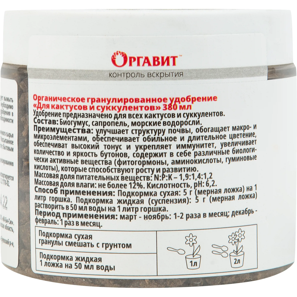Органическое гранулированное удобрение для КАКТУСОВ И СУККУЛЕНТОВУдобрение предназначено для всех кактусов и суккулентов. Способствует активному росту, восстанавливает и укрепляет корни, активизирует микрофлору почвы.