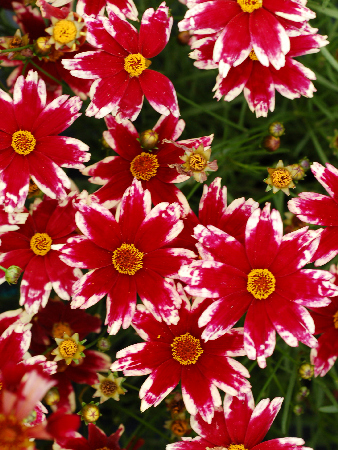 Многолетнее растение с многократно ветвистыми стеблями. Цветок карминно-красный с белой каймой и жёлтым центром. Высота-40см. Листья сидячие, очень узкие, иглоподобные, светло-зеленые. Соцветия - многочисленные, лучистые, звездообразные корзинки до 3 см в диаметре. Язычковые узкие; трубчатые - мелкие, желтые. Цветет с середины июля 65 - 70 дней. Месторасположение: предпочитают открытые солнечные места, переносят некоторое затенение. Морозоустойчивы. В средней полосе России зимуют без укрытия. Почва: лучше растут на плодородных, достаточно увлажненных почвах.Использование: для сборных цветников, для срезки, посадки в бордюры или группами. Пригодны для посадки в уличные вазы или контейнеры и в балконные ящики. Размножение: семенами, делением куста.Характеристики