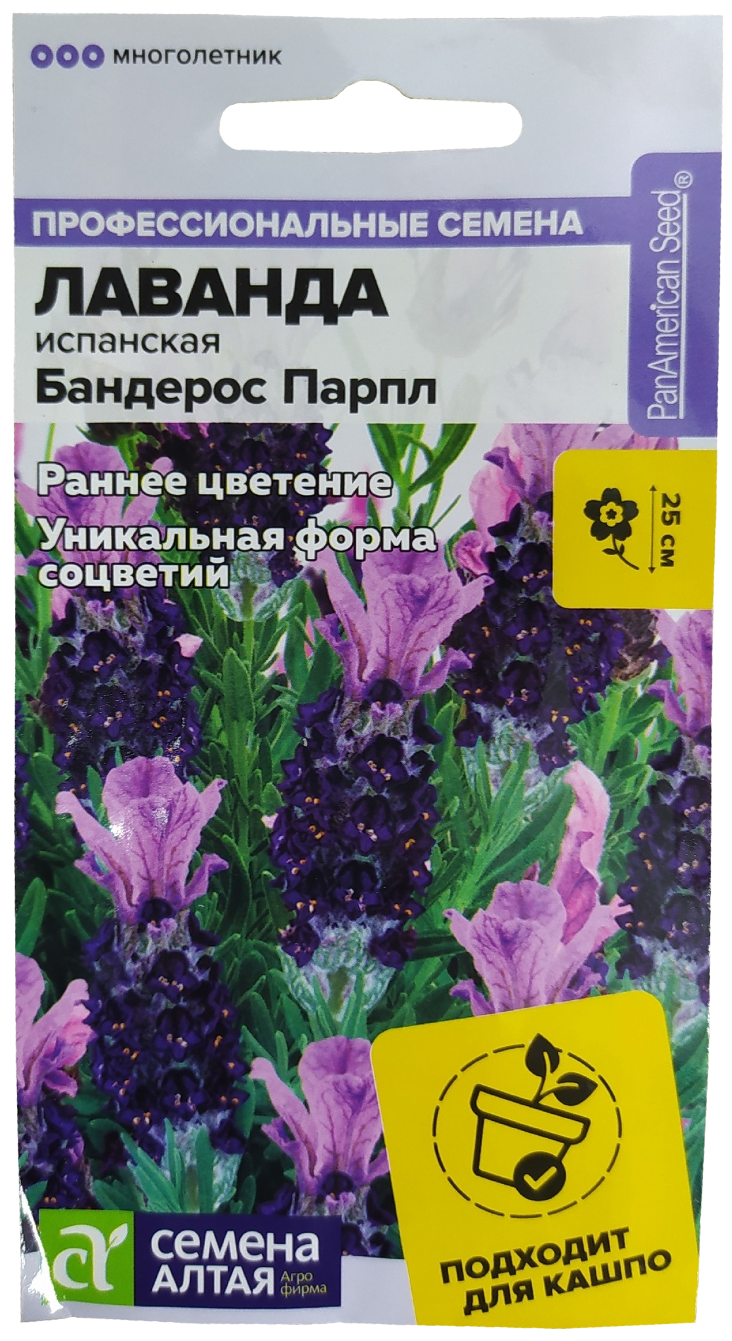 Уход: после высадки в грунт однократно подкармливают азотным удобрением, в фазе бутонизации – азотно-калийным, в южных регионах в начале осени – фосфорно-калийным для повышения зимостойкости, в более северных регионах возможно сохранение на зиму в горшечной культуре. Семена цветы Лаванды испанской "Бандерос Парпл".