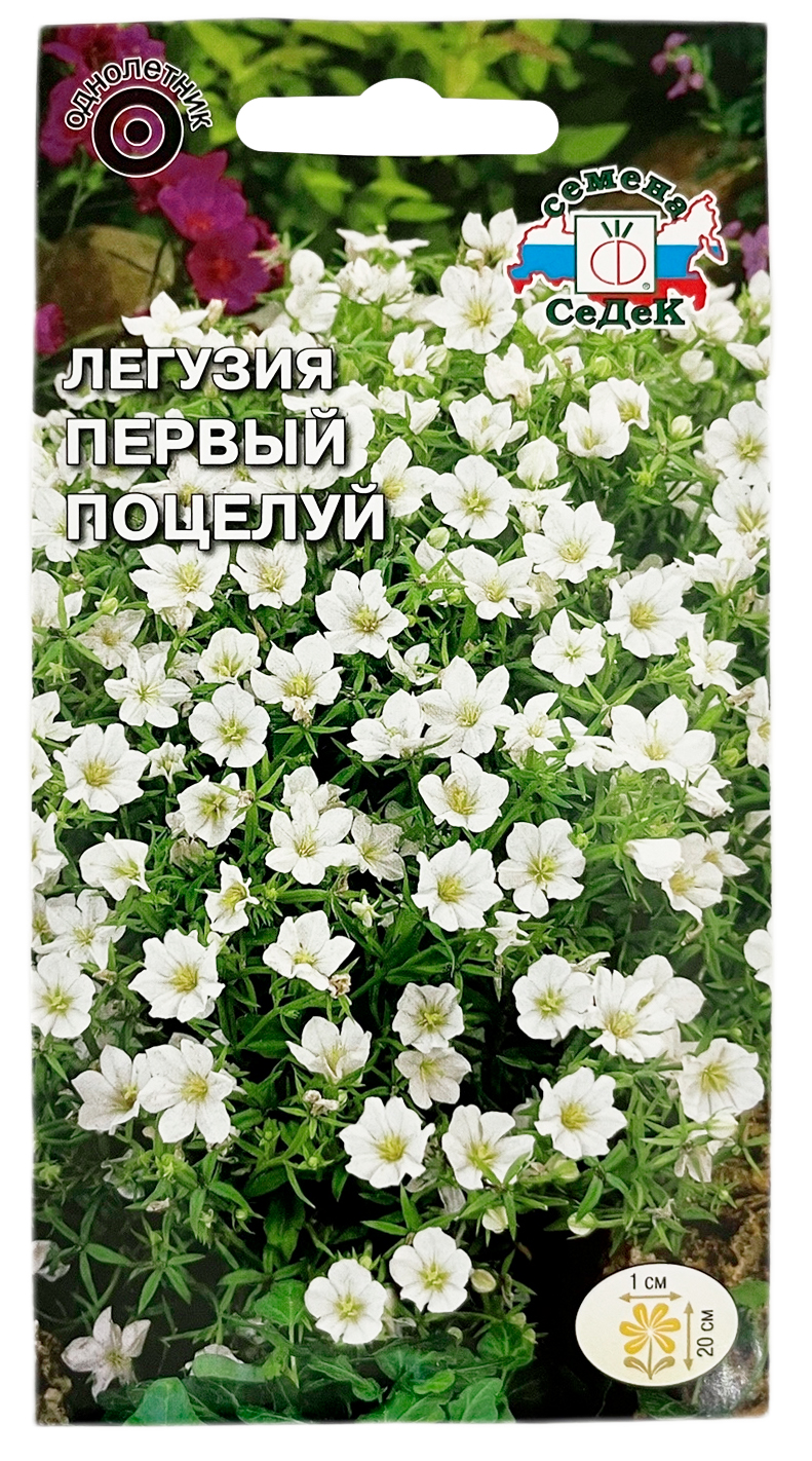 Легузия Первый поцелуй СеДеКТравянистое растение с изящным компактным кустиком, высотой 20 см. Цветет обильно многочисленными снежно-белыми колокольчатыми цветками. Хорошо растет на солнечных местах и в полутени на рыхлых, известкованных почвах, отличается повышенной холодостойкостью, отзывчивостью на внесение удобрений. Выращивается как горшечная культура на балконах, в подвесных корзинах, садовых контейнерах. Идеально подходит для каменистых горок, бордюров, миксбордеров.