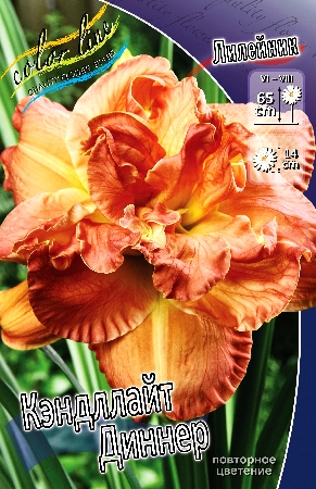 Относится к группе многолетников, высота растения 65 см, цветок: махровый, тёмно-лососевый с жёлтой продольной полосой и жёлтым горлом. Взрослый лилейник за сезон может образовывать до 30 цветоносов, на каждом из которых распускаются по 10-20 цветков. Цветёт с июня по август-сентябрь. Агротехника: лучшее время для посадки лилейника в средней полосе - май или август. В посадочную яму (диаметром около 50 см, и глубиной 30-40 см). Почва должна быть весьма плодородной. Полная обрезка лилейников на зиму проводится поздней осенью. Лилейники холодостойкие и выносливые.Характеристики