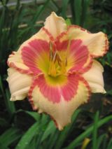 кремово-желтый с розово-красной каймой и кольцом, желтое горло, Н-55 cm 14 cm, 6-7,8, более 250 цветков за сезон на трехлетнем растенииХарактеристики
