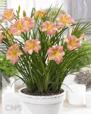 Относится к группе многолетников, высота растения 45 см, цветок:нежно-розовый со светлой полосой и желтым горлом. Взрослый лилейник за сезон может образовывать до 30 цветоносов, на каждом из которых распускаются по 10-20 цветков. Цветёт с июня по август-сентябрь. Агротехника: лучшее время для посадки лилейника в средней полосе - май или август. В посадочную яму (диаметром около 50 см, и глубиной 30-40 см). Почва должна быть весьма плодородной. Месторасположение: предпочитают открытые, хорошо освещенные участки. Полная обрезка лилейников на зиму проводится поздней осенью. Лилейники холодостойкие и выносливые.Характеристики