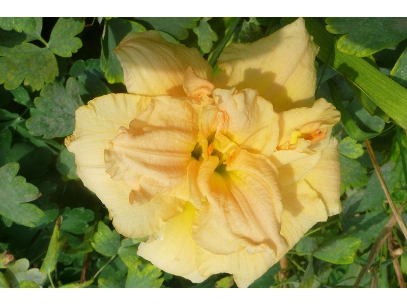 Лилейник ШНИКЕЛЬ ФРИТЦ (Hemerocallis Schnickel Fritz) Невысокий бордюрный махровый лилейник. Практически белый (кремово-белый) с зеленоватым горлом. Плотная текстура лепестков. Высота - 40 см; диаметр цветка - 13 смХарактеристики