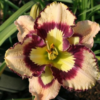 Лилейник Спейскост Си Шеллс относится к семейству многолетников. Листья широколинейные, собранные в прикорневую розетку. Цветки до 14 см диаметром,ремовый с темно-лиловым кольцом с уникальным зазубренным рисунком, кайма тоже темно-лиловая, горло желтое. Цветение наступает в начале августа. Цветение: июль-август Высота растения: до 70 см Агротехника: лучшее время для посадки лилейника в средней полосе - май или август. В посадочную яму (диаметром около 50 см, и глубиной 30-40 см). Почва должна быть весьма плодородной. Месторасположение: предпочитают открытые, хорошо освещенные участки. Полная обрезка лилейников на зиму проводится поздней осенью. Лилейники холодостойкие и выносливые.Характеристики