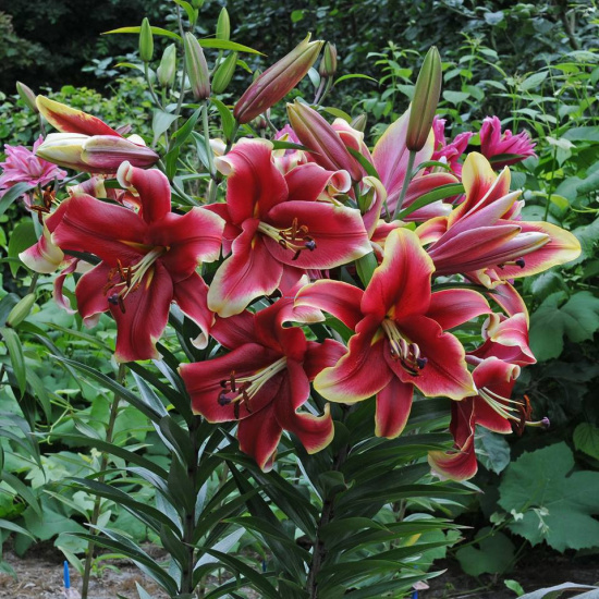 ОТ-гибриды – сложные межгрупповые гибриды. Необыкновенные по красоте лилии. Массовое цветение начинается во второй половине июля. Это прекрасная группа лилий, и чем южнее они выращиваются, тем мощнее выглядят.Африкан Леди - КРУПНЫЙ, красно-розовый с широким кремово-желтым кантом, диаметр цветка 18-22 см.