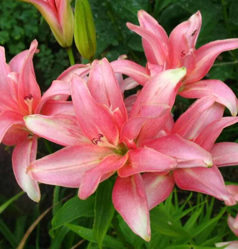 Стебли высотой до 110 см заканчиваются цветками диаметром до 15 см с множеством переливающихся нежно-розовых с персиковым оттенком вытянутых узких лепестков с полным отсутствием крапа. Цвести начинают во второй половине июня, но пригодны для внесезонной выгонки. Для открытого грунта предпочитают богатые питательными веществами почвы с хорошим дренажем, солнечные или полутеневые места с защитой от ветра. Хорошо смотрятся как в групповых так и одиночных посадках.Характеристики