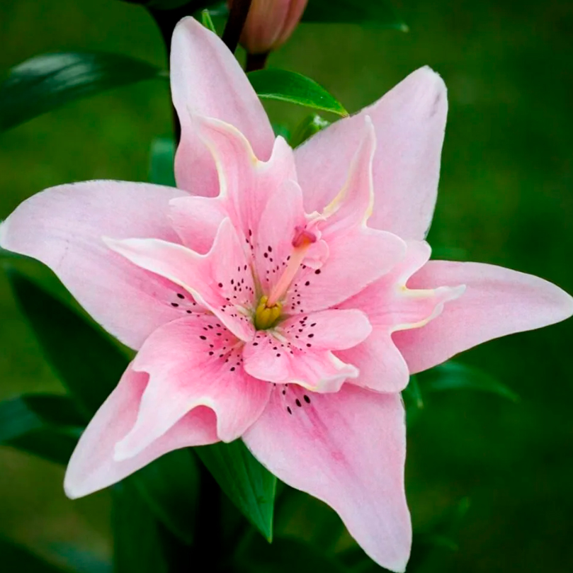 Лилия ЭлодиНежная красавица азиатская махровая лилия Elodie обладает нежным ароматом, и благородным светло-розовым окрасом с легким темным бордовым крапом по центру лепестков, которых у нее в 2 раза больше, чем у обычных лилий.