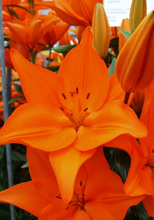 Огненно-оранжевая. Диаметр цветка 17 см, высота 130 см. Азиатские лилии предпочитают солнечное или полутенистое место, плодородную хорошо дренированную почву, хорошо зимуют.Цветут в середине лета 2-4 недели.Характеристики