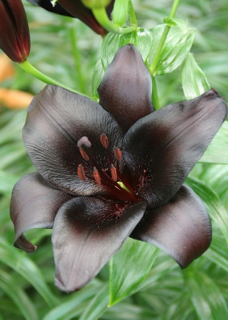 Лилия Найтрайдер относится к виду Азиатских гибридов. Цветки крупные, диаметром 15 см, бронзово-черный, растущие вверх и в бок. Лилия зацветает в конце июня-первой половине июля. Высота растения 90 см. Время посадки осенью - август-сентябрь или весной - в мае. Глубина посадки - 15-20 см. Расстояние между луковицами - 25-35 см. Расположение для посадки - открытые и затенённые места. Растение требует укрытия в первый год. Предпочитает нейтральную или слабокислую хорошо дренированную почву. Лилия Навона неприхотливая, устойчивая к грибным заболеваниям, зимостойкая. Размножается луковичками - детками и луковичными чешуйками.Характеристики