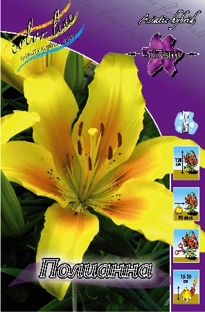 Полианна -азиатская лилия, высота растения 115см, цветок желтый, с оранжевыми мазками в центре, коричневый крап.Характеристики