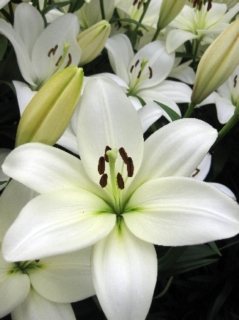 Относится к виду (LA) гибридов. Цветки диаметром 20 см, белые, удлиненной формы, растущие вверх и в сторону. Зацветает в конце июня-первой половине июля. Высота растения 120 см. Время посадки осенью - август-сентябрь или весной - в мае. Глубина посадки - 15-20 см. Расстояние между луковицами - 20-30 см. Расположение для посадки - открытые и затенённые места. Растение требует укрытия в первый год. Предпочитает нейтральную или слабокислую хорошо дренированную почву. Лилия Уайт Саунд неприхотливая, устойчивая к грибным заболеваниям, зимостойкая. Размножается луковичками - детками и луковичными чешуйками.Характеристики