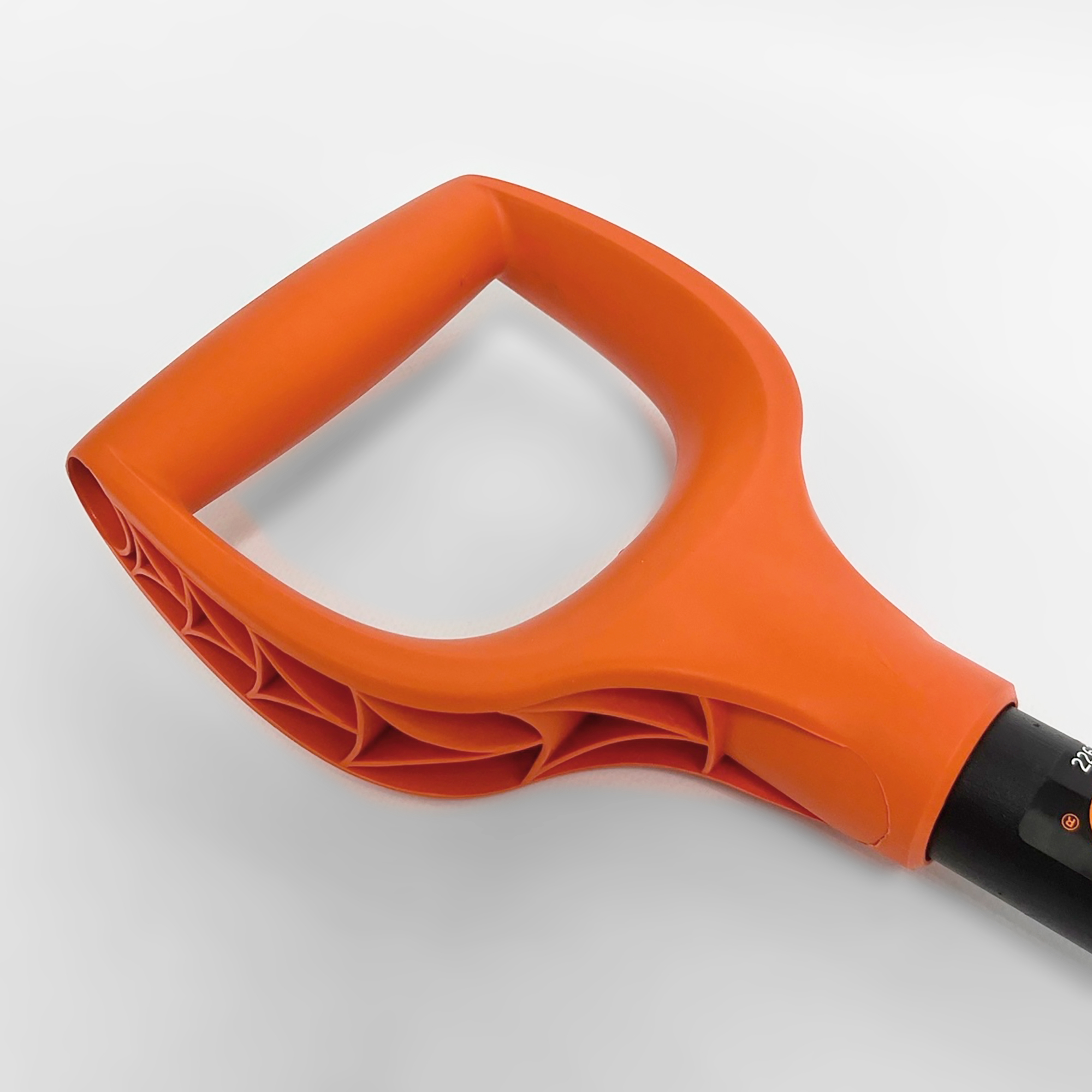 Конструкция лопаты усилена рёбрами жёсткости, а металлический черенок обеспечивает прочность и долговечность.