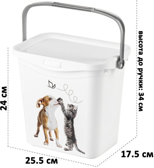 Контейнер для корма животных объемом 6 литров выполнен из качественного полипропилена и не выделяет вредных веществ. Оснащен удобной ручкой для переноски и крышкой. Размер контейнера 25,5х17,5х24 см. Высота с ручкой 34 см. Такой контейнер станет удобным дополнением в доме!Характеристики