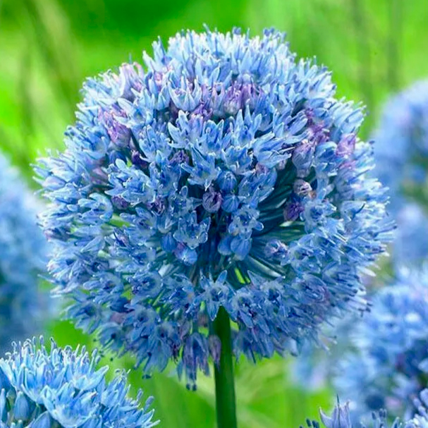 Лук Голубой - прост в культуре, очень красиво цветет и эффектен внешне. Используется для украшения садов, парков, приусадебных участков. Уже традиционно присутствуют декоративные луки в альпинариях, рокариях, каменистых садиках, групповых посадках и бордюрах. Они пригодны для срезки, в том числе в качестве сухоцветов и для выгонки цветов во внесезонный период. Луки сильно варьируют по внешнему виду, размеру, форме, строению соцветий и листьев. Цветы луков бывают самых разных окрасок.Месторасположение: все декоративные луки светолюбивы, поэтому участок должен быть солнечным, хорошо прогреваемым и незатененным. Почва: должна быть рыхлой, плодородной, с нейтральной или слабощелочной реакцией, водопроницаемой. Посадка: глубина посадки в 3 раза должна превышать высоту луковицы, расстояние между луковицами 15- 30 см. Высаживают луковицы в сентябре – октябре. Цветение: июнь – июль. Использование: применяют в групповых посадках, миксбордерах, низкорослые виды - на каменистых горках.