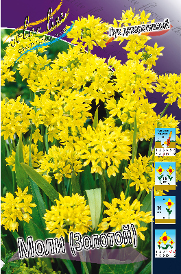 Лук декоративный Моли (золотой) относится к группе многолетних луковичных цветов. Цветки звездчатые, собраны в шарообразное соцветие. Высота растения 30 см. Окраска: жёлтая, сердцевина цветка светло-зеленого цвета с ярко-желтыми тычинками. Листья плоские, ланцетные, сложенные по центральной жилке и отогнутые, серо-зеленой окраски. Цветение очень обильное и продолжается с мая по июль. Предпочитает рыхлую, хорошо дренированную, плодородную почву, с нейтральной слабощелочной реакцией. Глубина посадки - три высоты луковицы. Расстояние между луковицами 15 - 30 см. Высаживают луковицы в сентябре - октябре. Предпочитает солнечные участки, хорошо прогреваемые и затененные. Сорт универсального назначения, морозостойкий, практически не поражается болезнями. Сфера использования - альпинарии, рокарии, каменистых садики, групповые посадки и бордюры.Характеристики