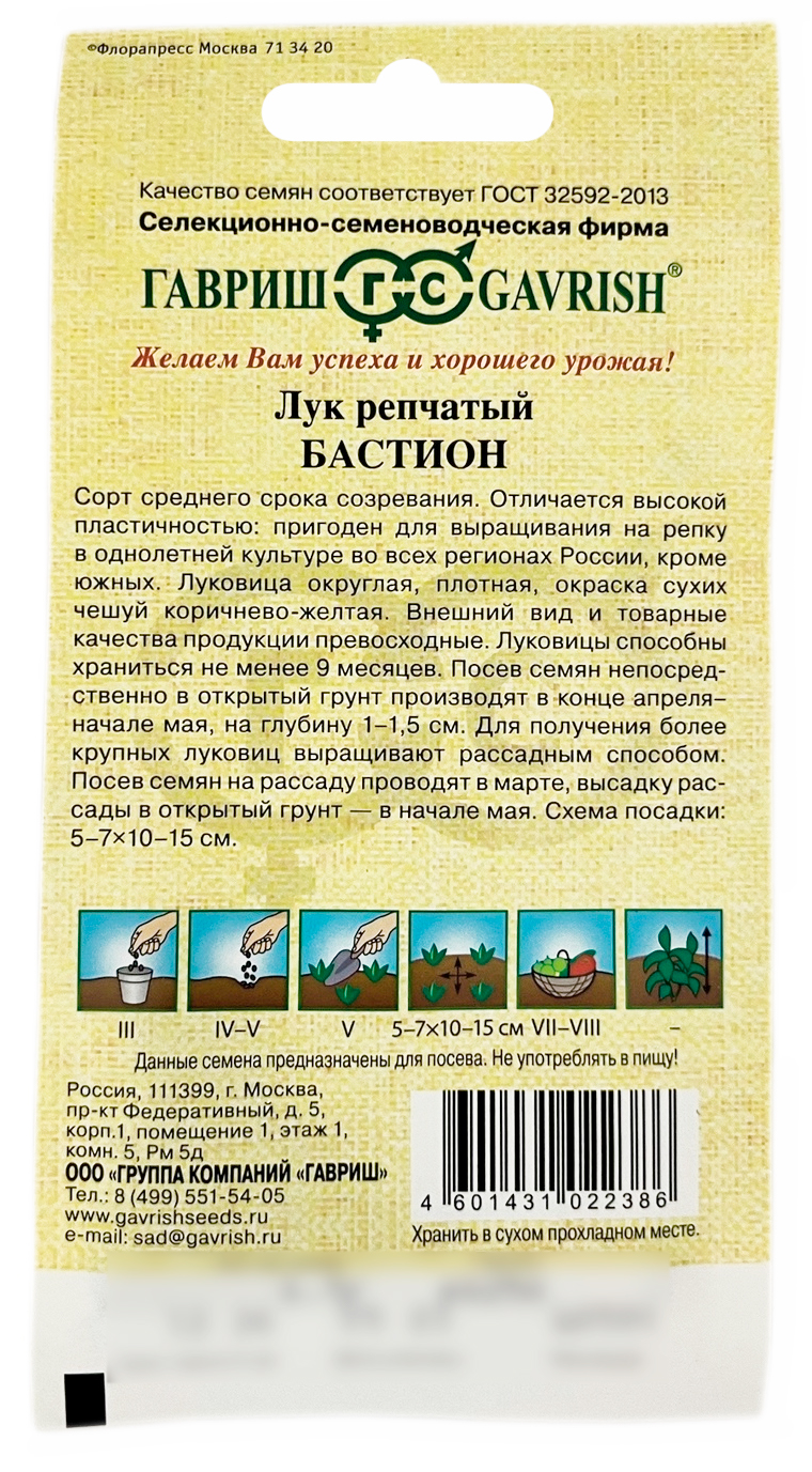 Лук репчатый БАСТИОН ГАВРИШСорт среднего срока созревания с высокой пластичностью. Он подходит для выращивания почти во всех регионах России, кроме южных. Рекомендуется для выращивания в однолетней культуре из семян на садово-огородных участках и в фермерских хозяйствах.