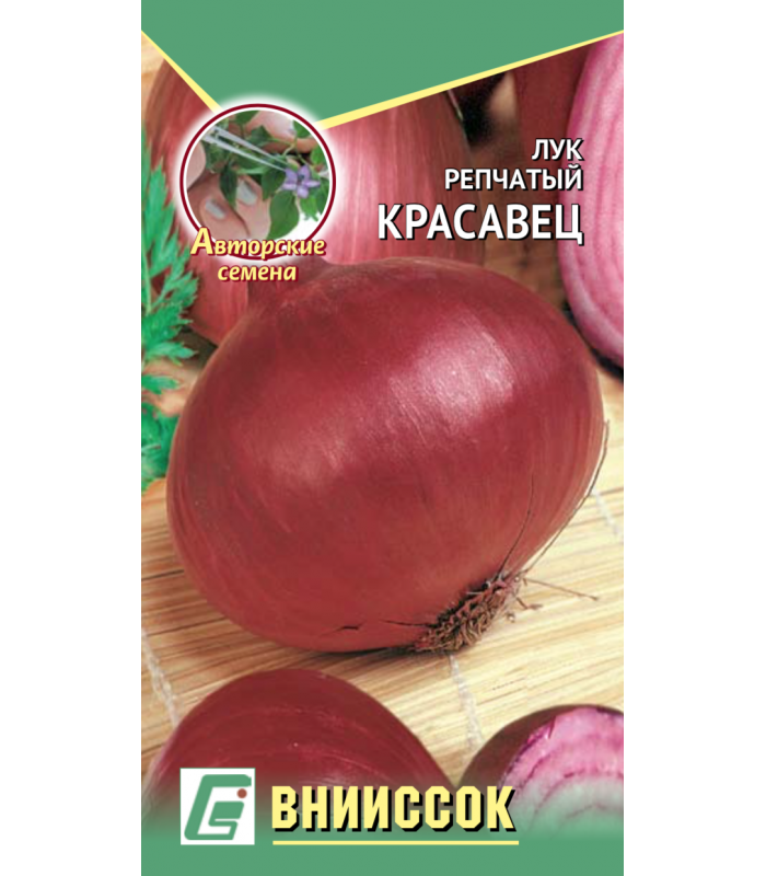 Лук репчатый КрасавецСреднеспелый, для выращивания через севок и в однолетней культуре из семян и рассады. Луковица округлая, плотная, фиолетово- вишневая, массой 70 - 100г. Получил широкое районирование в РФ благодаря стабильной урожайности, замечательному полуострому вкусу, сочности луковиц. Сохранность луковиц без прорастания 7 - 8 месяцев. Транспортабельный, толерантен к пероноспорозу и болезням хранения. Урожайность 6 - 7 кг/м2.Схема посева семян 20 х 5см.