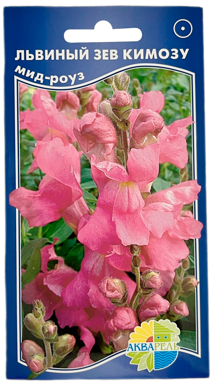 Львиный зев КИМОЗУ мид-роуз АКВАРЕЛЬОдин из самых популярных и незаменимых летников, обильно цветущий все лето, способный украсить даже парадные цветники. Отличается компактной и низкорослой формой, с хорошей ветвистостью, высотой до 15 см. Соцветия плотные, длиной до 10 см, без запаха, розовые. Как низкорослое растение незаменимо при украшении балконов, садовых вазонов, используют для оформления бордюров, переднего плана цветников. Сочетается с низкорослыми астрами, петунией, бархатцами, цинерарией, сальвией.
