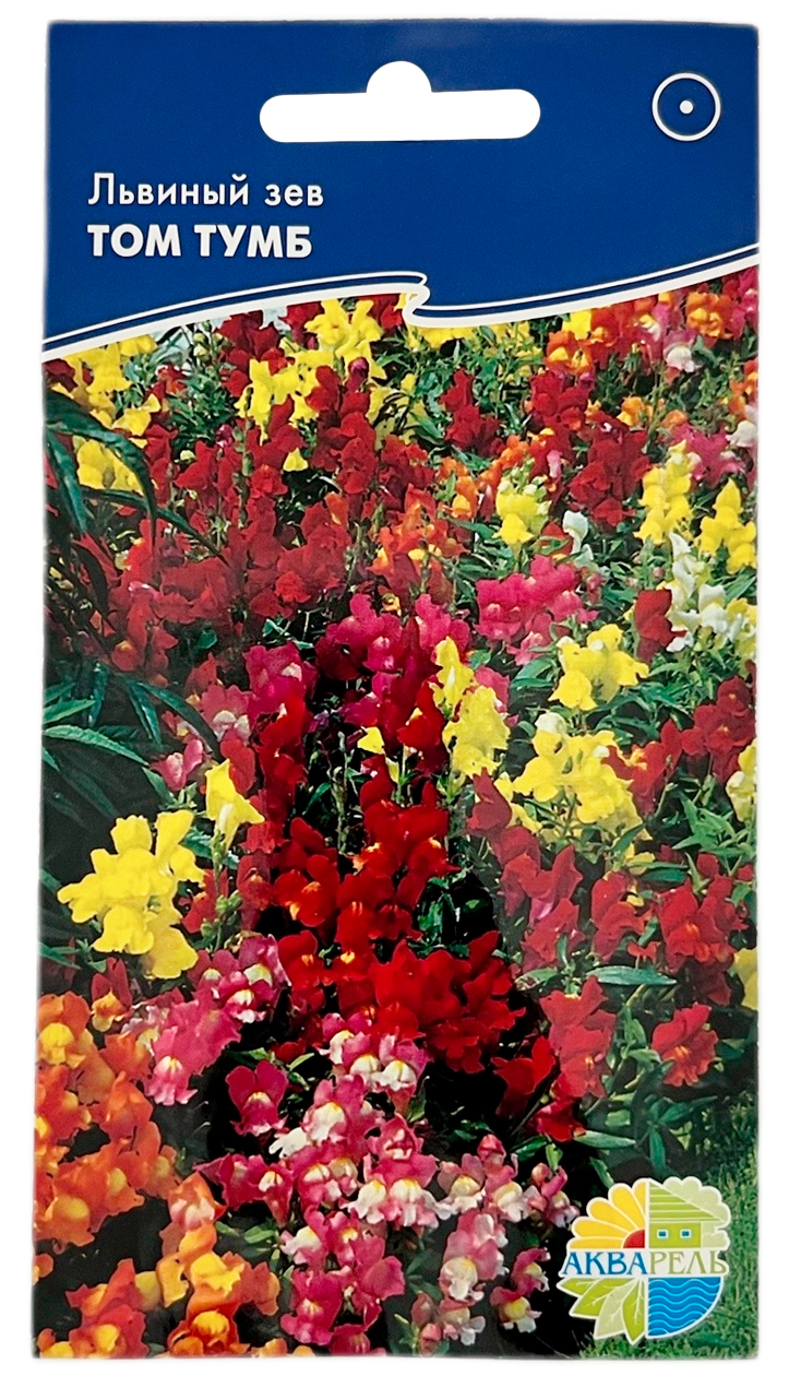 Львиный зев ТОМ ТУМБ АКВАРЕЛЬОдин из самых популярных однолетников. Отличается компактной и низкорослой формой, до 20 см. Соцветия плотные, высотой до 8 см, смесь окрасок. Как низкорослое растение незаменим при украшении балконов, садовых вазонов, используют для оформления бордюров, переднего плана цветников. Сочетается с низкорослыми астрами, петунией, бархатцами.