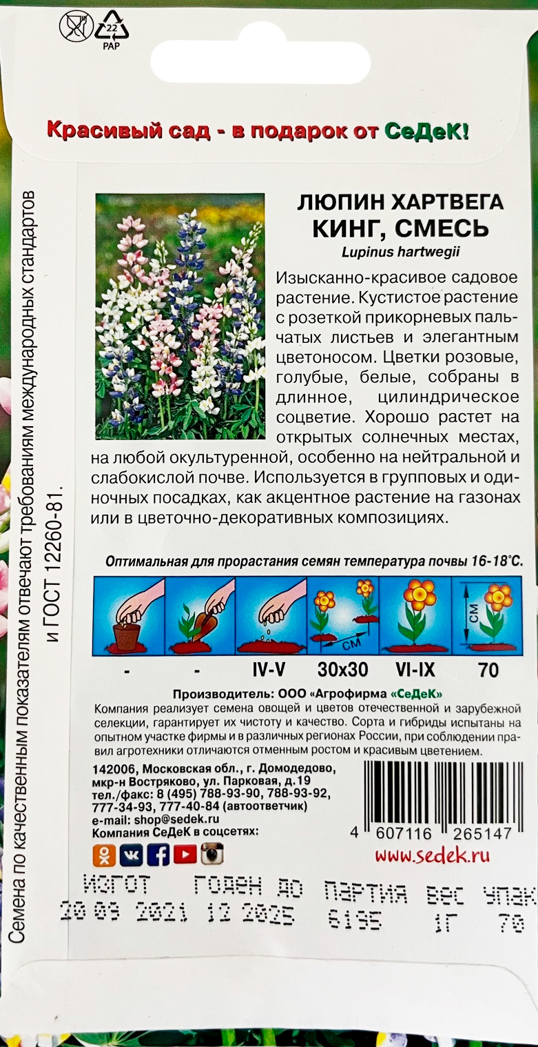 Люпин семена, Товар, 00-00000738, 0.01 |