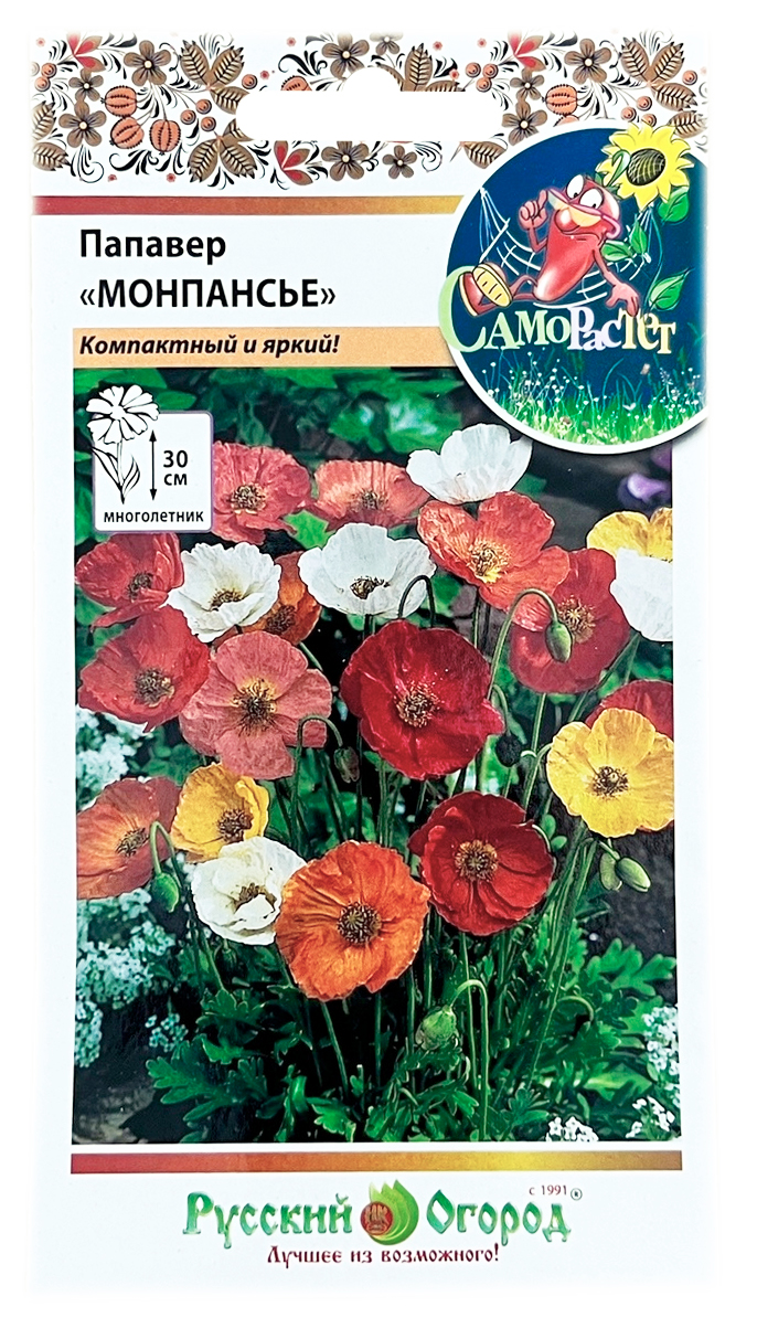 Папавер МОНПАНСЬЕ смесь Русский ОгородВеликолепная смесь, способная оживить как ваш сад камней или альпийскую горку, так и зеленую гладь лужайки или газона. Цветы широкой палитры ярких окрасок будут радовать ваш взгляд на протяжении всего лета. Растение компактное и очень неприхотливое. Очень красив в букете.
