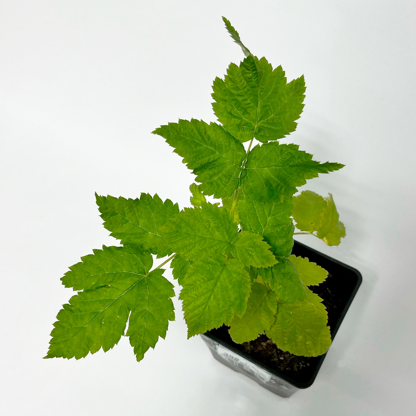 Листочки крупные, расширенные, с гофром, яйцевидной формы с заострёнными кончиками, включающие до 5 листочков сочного зелёного оттенка, опушённых слабо, с зазубринами. Зубчики нередко получают красноватые оттенки. Наиболее крупные листочки – 13 см по длине и 8,6 см по ширине. Нередко образуются листья желтоватых оттенков – преображение типично и для «крапивки», и для плодоносящих растений.