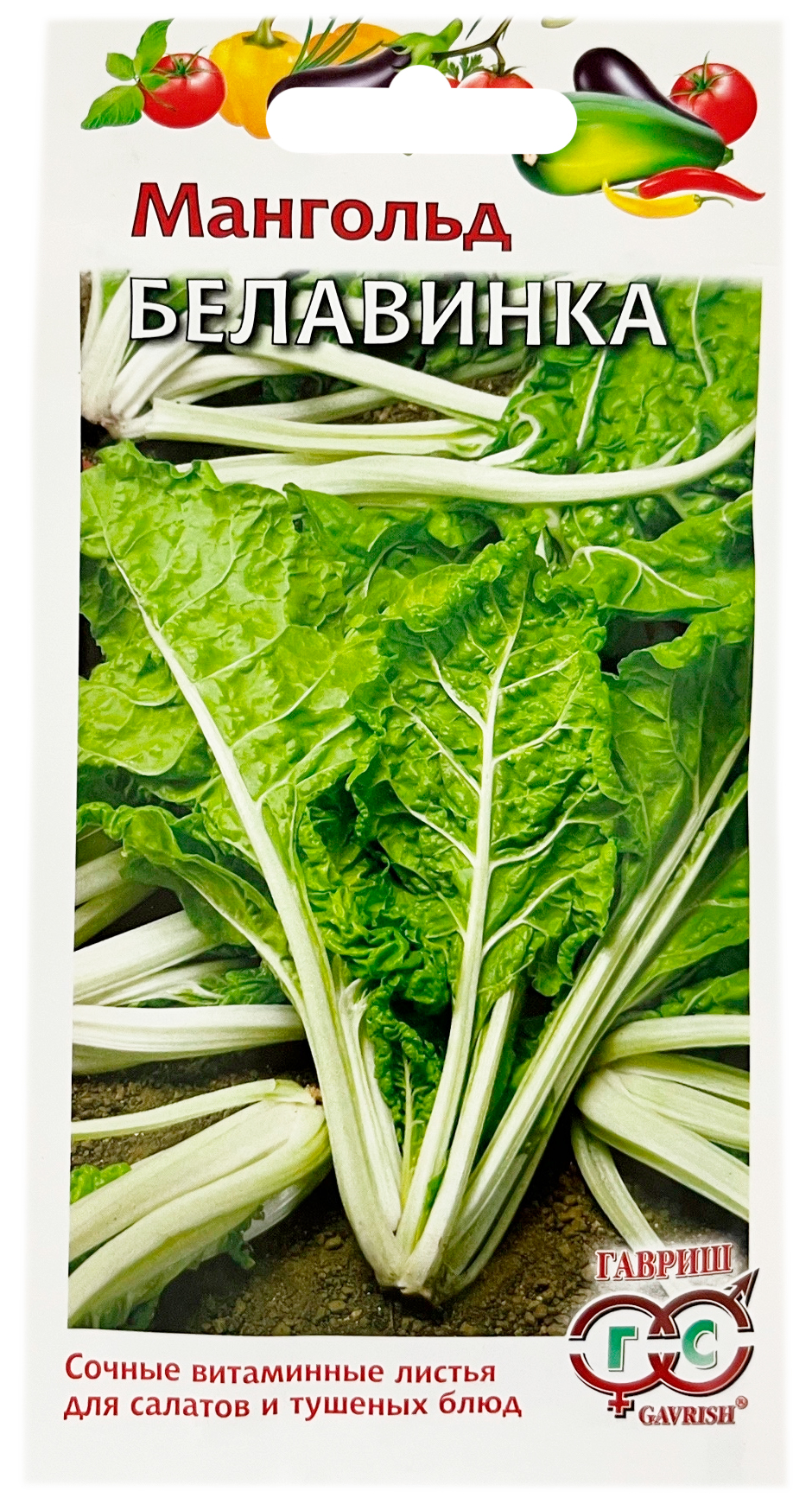 Мангольд БЕЛАВИНКА ГАВРИШСорт среднеспелый. Розетка листьев прямостоячая, крупная, слегка раскидистая, высотой 52–70 см. Лист длинночерешковый, большой, удлиненно-овальной формы, темно-зеленый. Край цельный. Поверхность слегка пузырчатая. Листовая пластинка длиной 28–48 см., шириной 21–30 см. В кулинарии листья мангольда используются для приготовления голубцов, овощных супов, осетинских пирогов. Посев в открытый грунт — в начале мая, на глубину 2,5 см. Допускается многократная срезка.