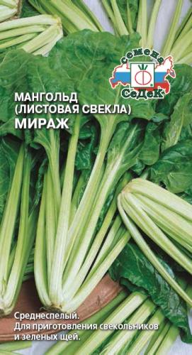 Среднеспелый сорт (от всходов до первой срезки 40-45 дней, до товарной годности 60 дней). Розетка листьев прямостоячая, длиной 50-60 см. Листья крупные, удлиненно-овальной формы, зеленые, слабо-пузырчатые. Черешки светло-зеленые, длиной 25 см. Отрастает очень быстро, поэтому требуется регулярная срезка. Ценность сорта: устойчивость к цветушности, холодостойкость, отличные вкусовые качества. Богат витаминами С, В1, В2 и РР, каротином, минеральными солями, белками и сахарами. Употребление сока мангольда способствует образованию эритроцитов, расширению сосудов, улучшению памяти. Рекомендуется при малокровии, помогает очищению желчного пузыря, печени и почек. Используется для приготовления свекольников и зеленых щей из листьев и черешков, салатов из листьев, консервации.Оптимальная для прорастания семян температура почвы 16-20°С.Характеристики