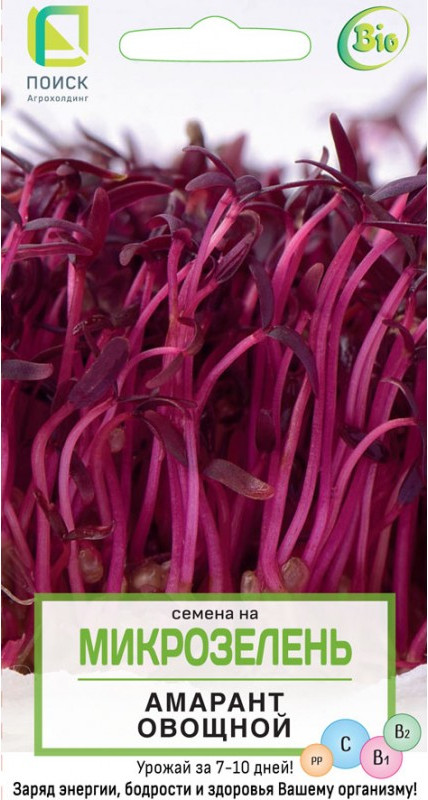 Микрозелень красного амаранта готова к употреблению на 9-11 день и содержит в себе полезных веществ в десятки раз больше чем во взрослом растении или сухом семени.