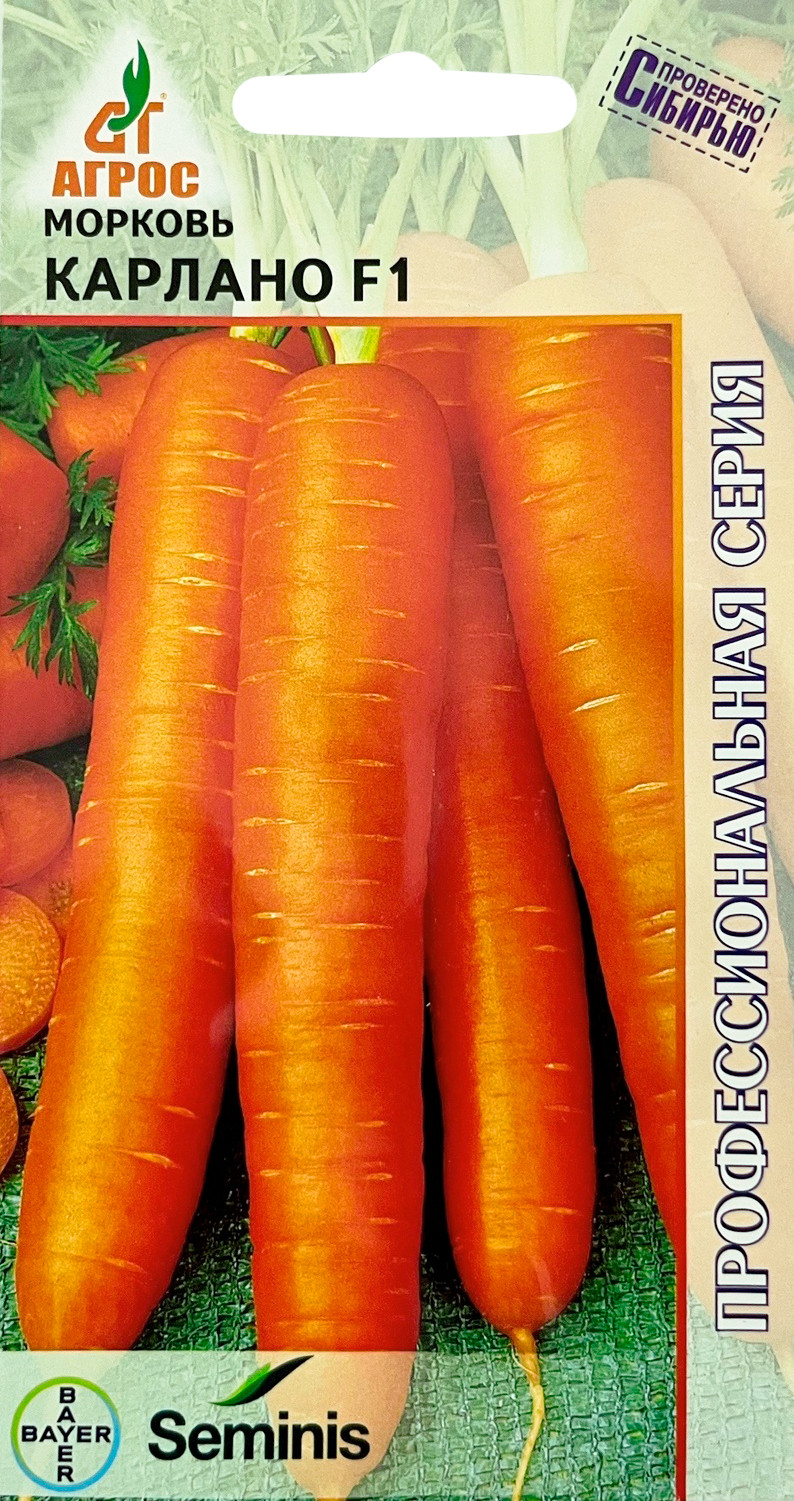 Морковь Карлано F1 400штСреднепоздний гибрид моркови нантского типа. Корнеплод цилиндрический, выровненный, однородной оранжевой внешней и внутренней окраской, длиной 20-22 см, диаметром 2-3 см. Характеризуется хорошей лежкостью и устойчивостью к цветушности. Имеет полевую толерантность к растрескиванию. Отлично хранится до нового урожая. Рекомендуется для потребления в свежем виде, переработки и длительного хранения.