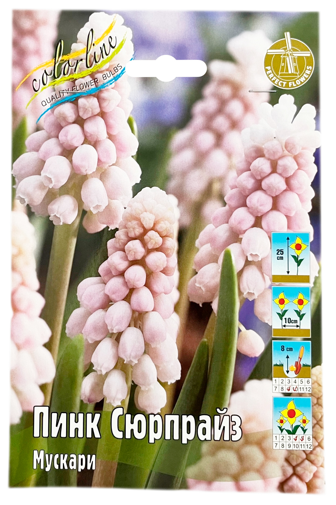 Мускари ПИНК СЮРПРАЙЗПопулярное растение для весеннего садово-паркового дизайна. Высота до 25 см. Цветёт в апреле-мае. Используется в мини-цветниках, для декорирования каменистых садиков и бордюров. Хороший материал для изящных весенних букетов. Тонкий мускатный аромат. Цвет: нежно-розовый.
