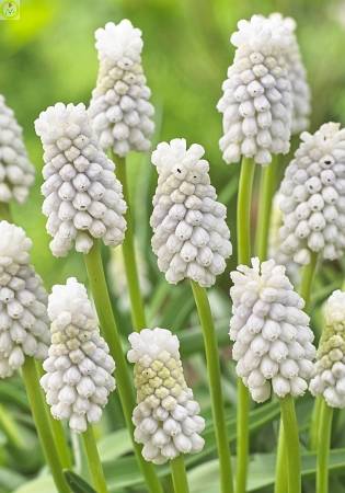 Мускари Сибериан Тайгер многолетник, род растений из семейства гиацинтовых (мышиный гиацинт, гадючий лук). Цветок белый, серебристо-белый. Высота растения до 25 см, обладает сильным ароматом. Посадка под осень, на глубину 1-2 см. Растут в полутени и на солнечных местах. Мускари Бейбиз Бреф неприхотливые, зимостойкие. Растение не выносит застоя воды, поэтому нельзя высаживать на пониженных участках. Изящно смотрятся в весенних бордюрах, используются для составления букетов, а также для выгонки.Характеристики