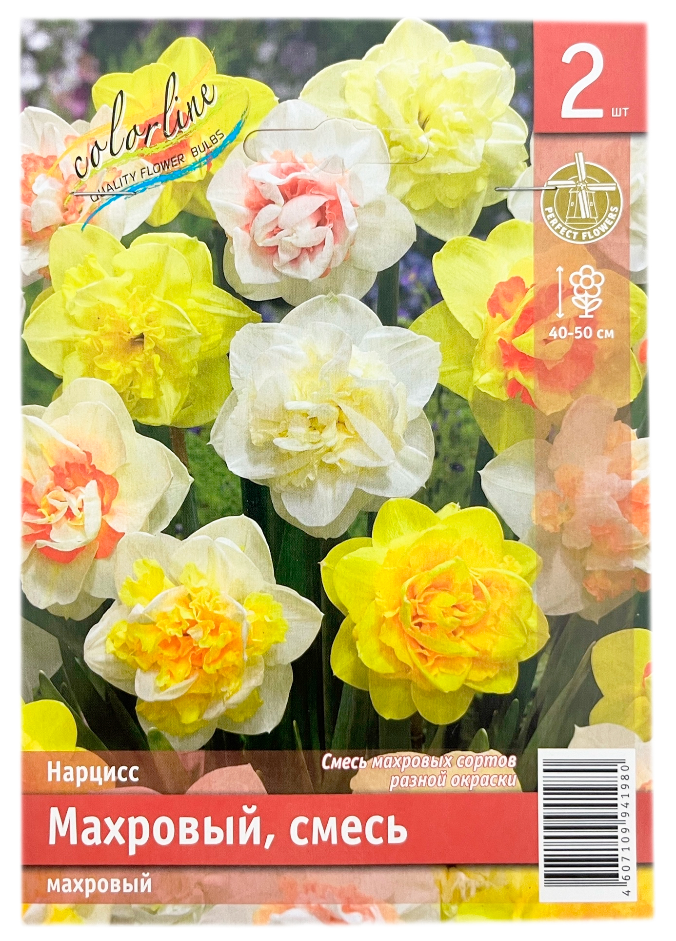Нарцисс МАХРОВЫЙ, СМЕСЬСмесь махровых сортов разной окраски. Высота до 50 см. Каждый сорт неповторимо красив, цветки средних и крупных размеров.