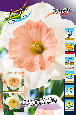 Нарцисс Сентинель относится к группе крупно-корончатых. Высота растения до 40 см. Уникальный цветок! Белый с желтой коронкой, которая постепенно становится розовой, по краю с золотистым отливом. Диаметр цветка около 10 см. Посадка - август - начало сентября. Глубина посадки 15-20 см, на расстоянии 10-12 см друг от друга. Цветение начинается с середины мая. К почве особенных требований нет, но при условии, что она хорошо дренирована. Расположение для посадки - солнечные места или полутень. Нарцисс широко используется в озеленении, как раннецветущее растение, в клумбах, рабатках, группах между кустарниками, отдельными пятнами.Характеристики