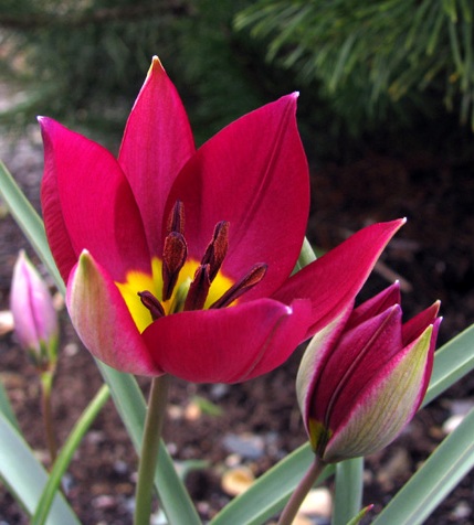 Тюльпан Пульчелла Виолацци Pulchella ViolaceaБотанические тюльпаны — класс, объединивший в себе все дикорастущие виды тюльпанов. Тюльпаны ботанические, как правило, низкорослы, рано цветут, окраска цветков (в зависимости от вида) может быть самой разнообразной. Среди дикорастущих ботанических тюльпанов встречаются и многоцветковые виды. Ботанические тюльпаны — незаменимы для создания альпийских горок и рокариев.
