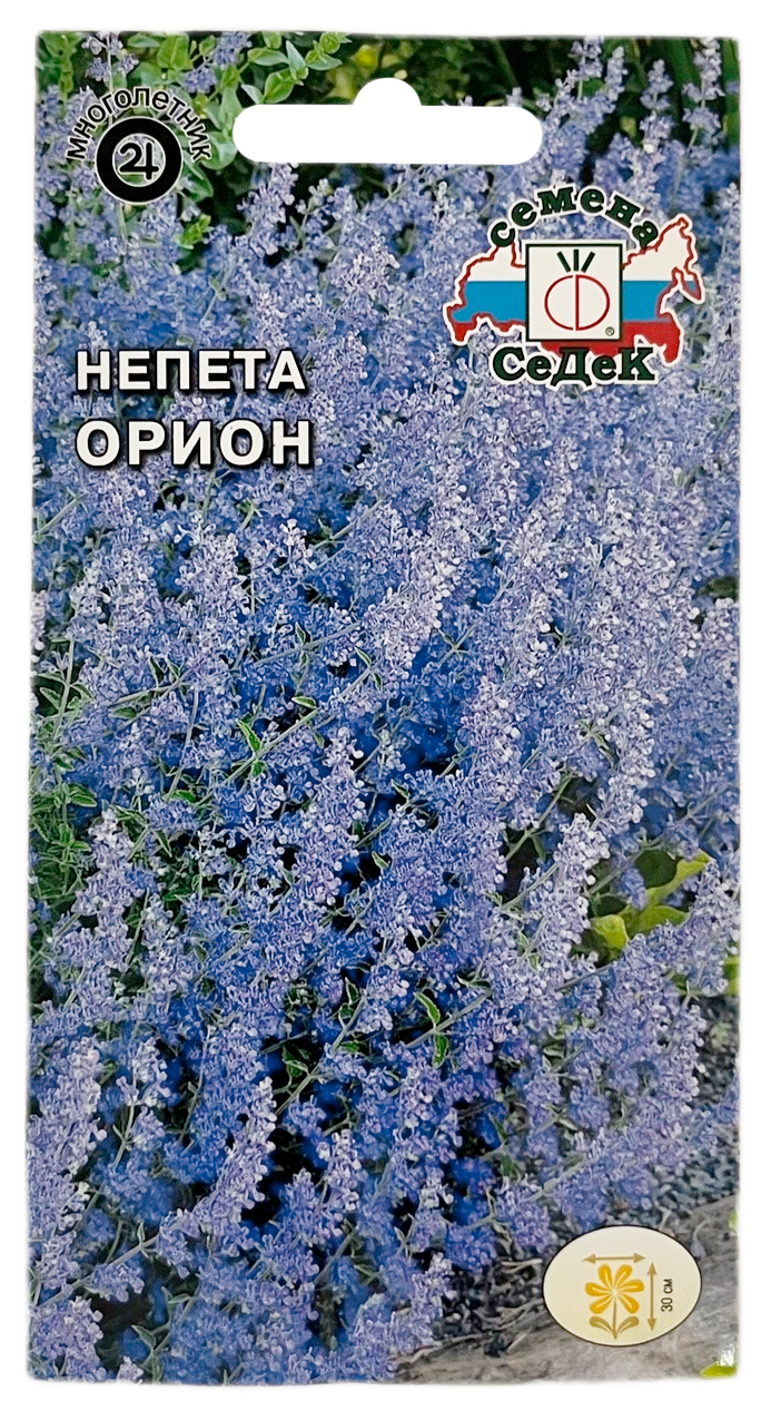 НЕПЕТА КОТОВНИК ОРИОН СеДеКНевысокое, ветвистое, сильно разрастающееся растение с серебристо-серыми листьями. Цветки мелкие, трубчатые, собраны в рыхлые, удлинённые соцветия голубого цвета. Отличается неприхотливостью, прекрасно растёт на любой хорошо дренированной садовой почве. Предпочитает открытые солнечные места. Удаление отцветших соцветий стимулирует повторное цветение. Старую поросль удаляют весной, когда появятся новые побеги. Используется в групповых и одиночных посадках на бордюрах, клумбах, рабатках, каменистых горках.